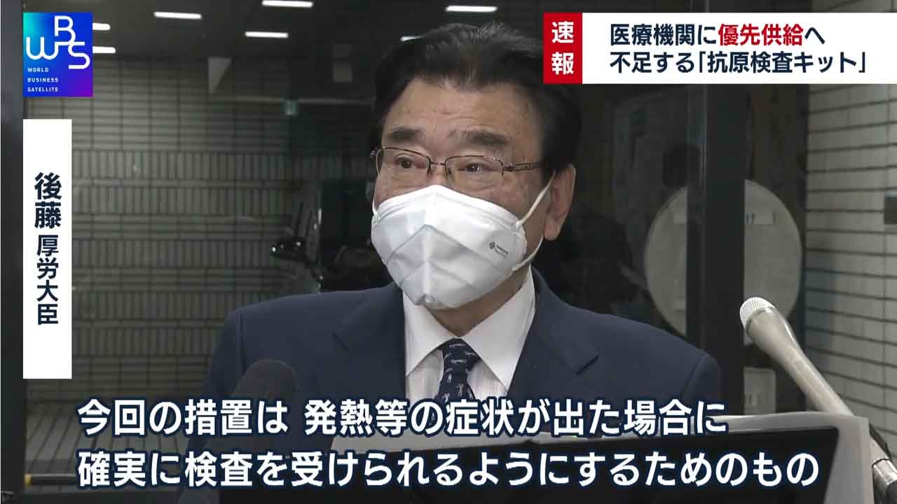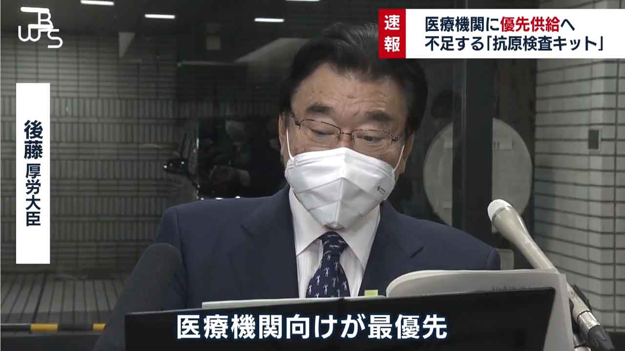 有症患者に対して検査を行う医療機関に安定的に供給できるようにした上で自治体が主導で行う無料検査は現状の数を維持。一方、一般薬局が販売する分については過度な発注をしないよう要請する考えです。