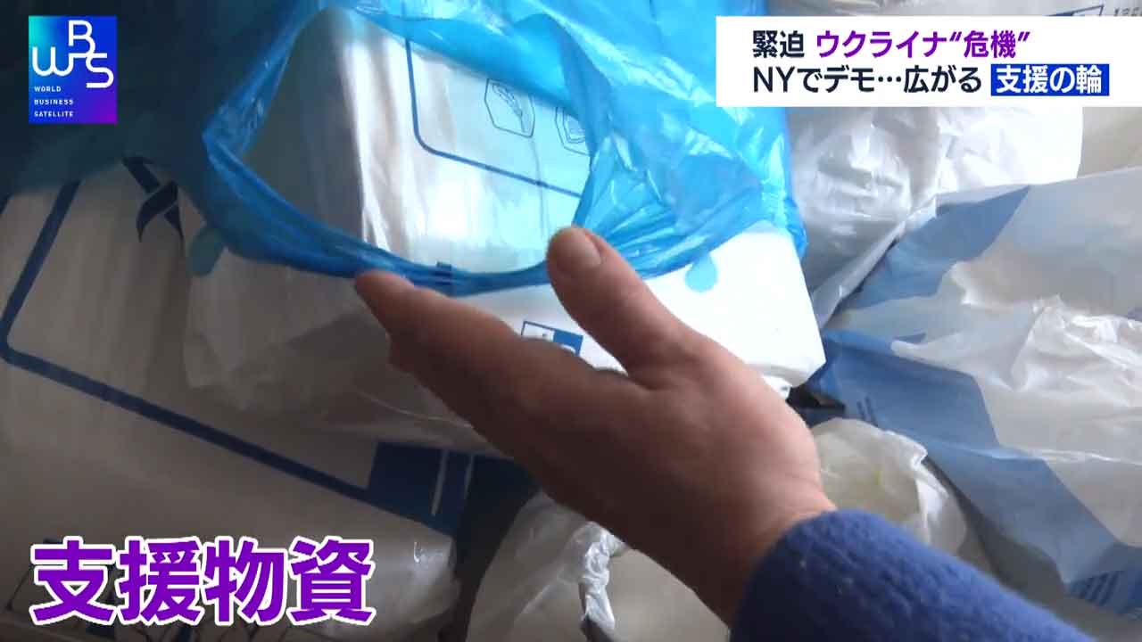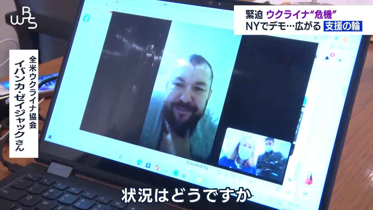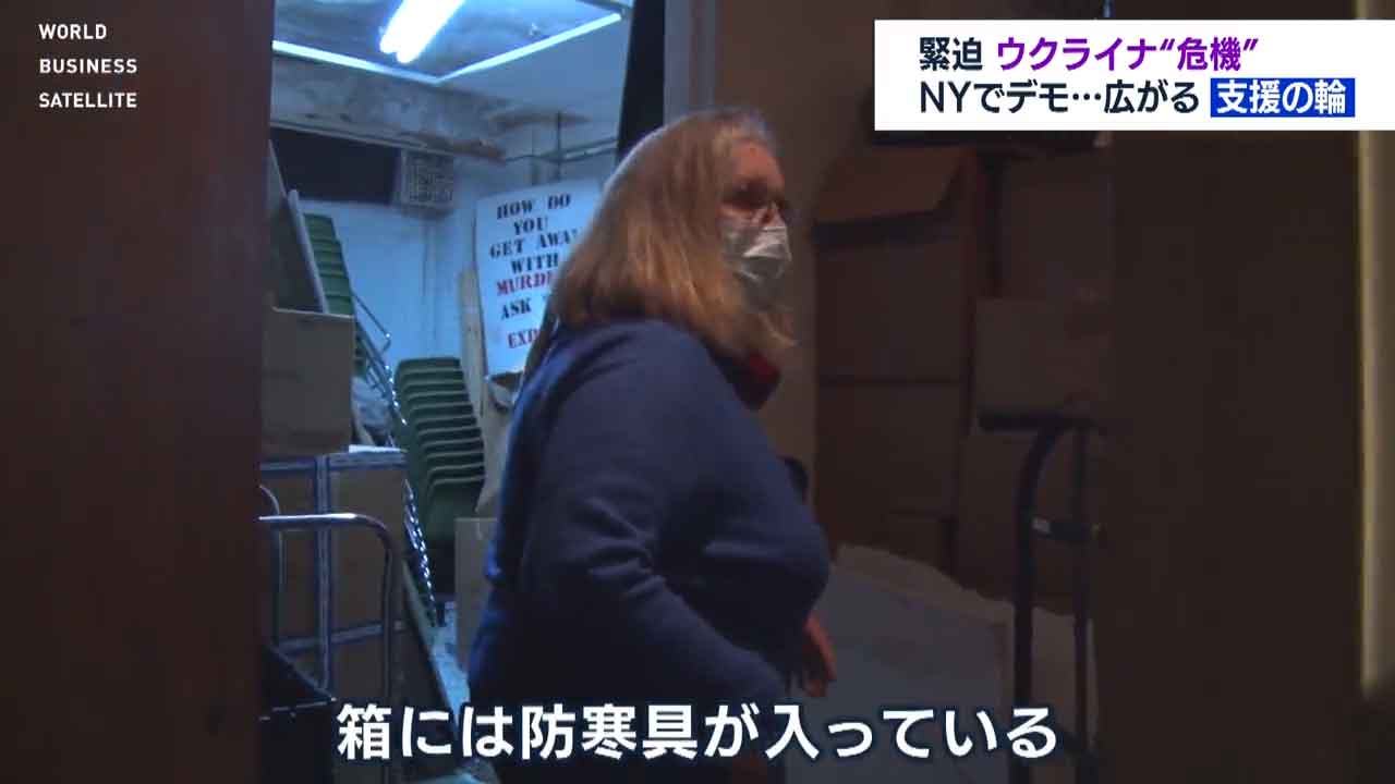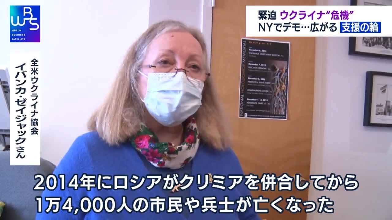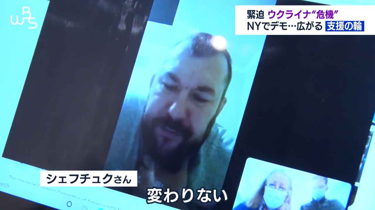 ニューヨークの国連本部前です。ロシアによるウクライナ進行を止めようと抗議集会が開かれています。
