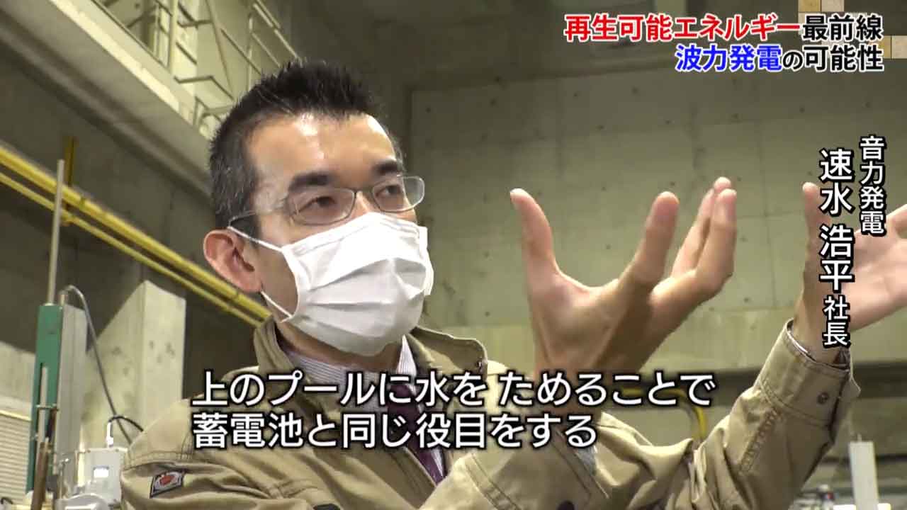 波の力をどう電力に変えるのか、このシステムを開発した速水浩平社長に見せてもらいました。