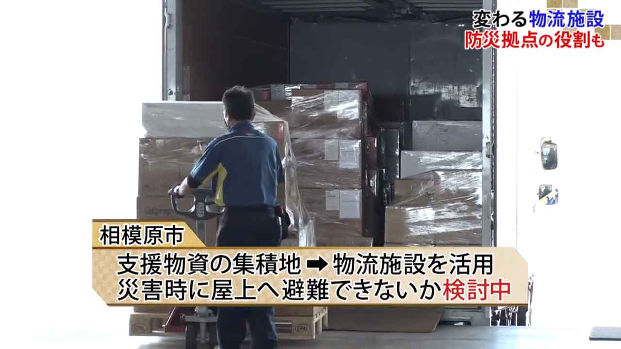 相模原市は各地から集まる支援物資の集積地として物流施設を活用するほか、災害時に市民や車両が屋上へ避難できないか検討をしています。