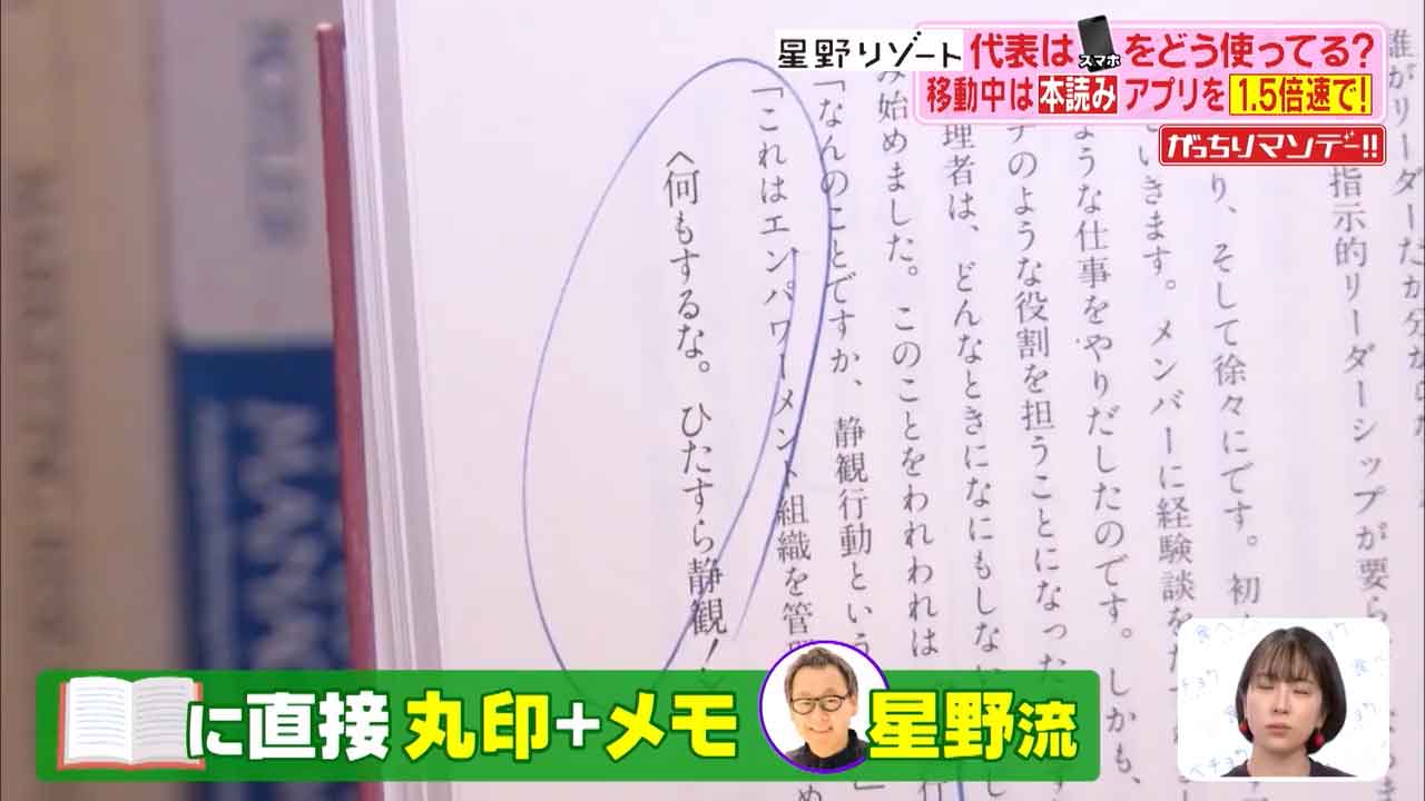 読んだビジネス書の大事なところに丸印やメモ書きをするのが星野さん流だったはず。
