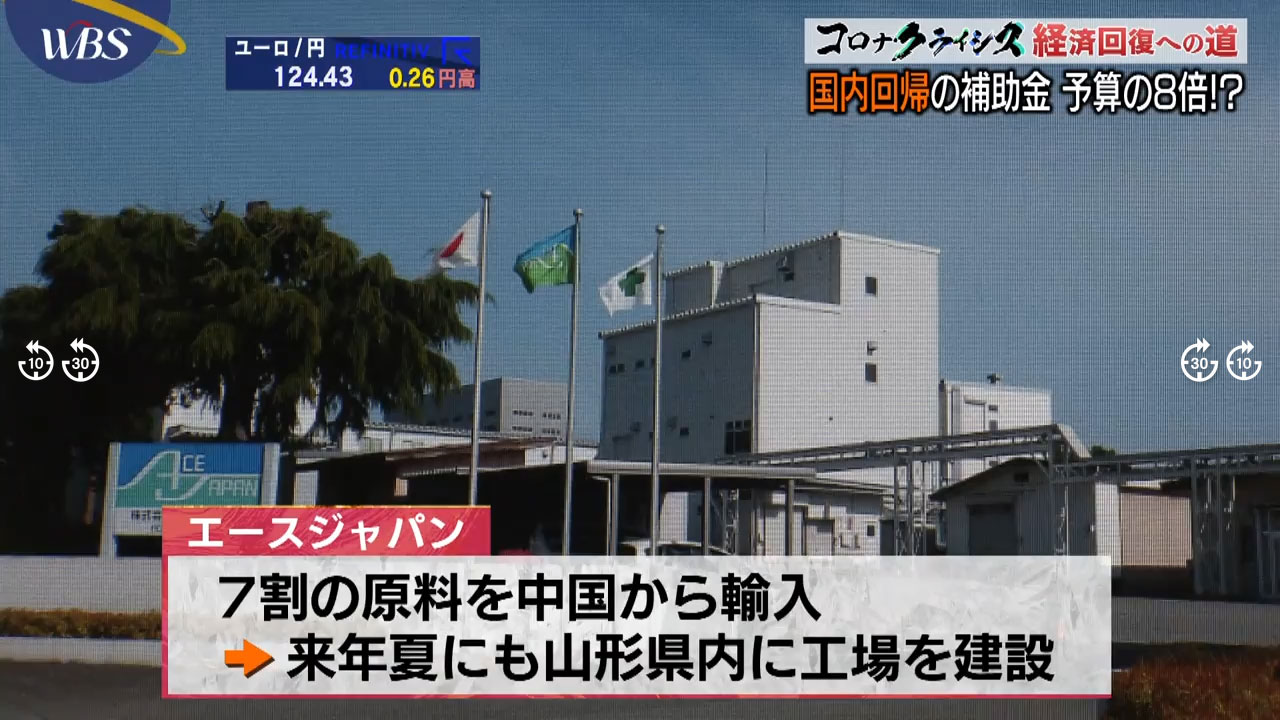 また山形県の医薬品原薬メーカー、エースジャパンは7割ほど中国から原料を輸入していましたが一部を自社で生産するため来年夏にも県内に工場を建設します。