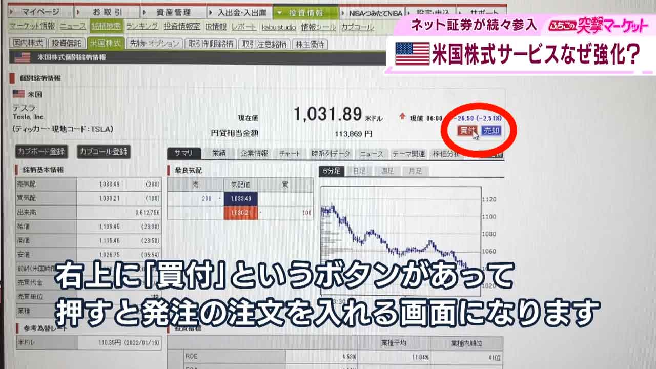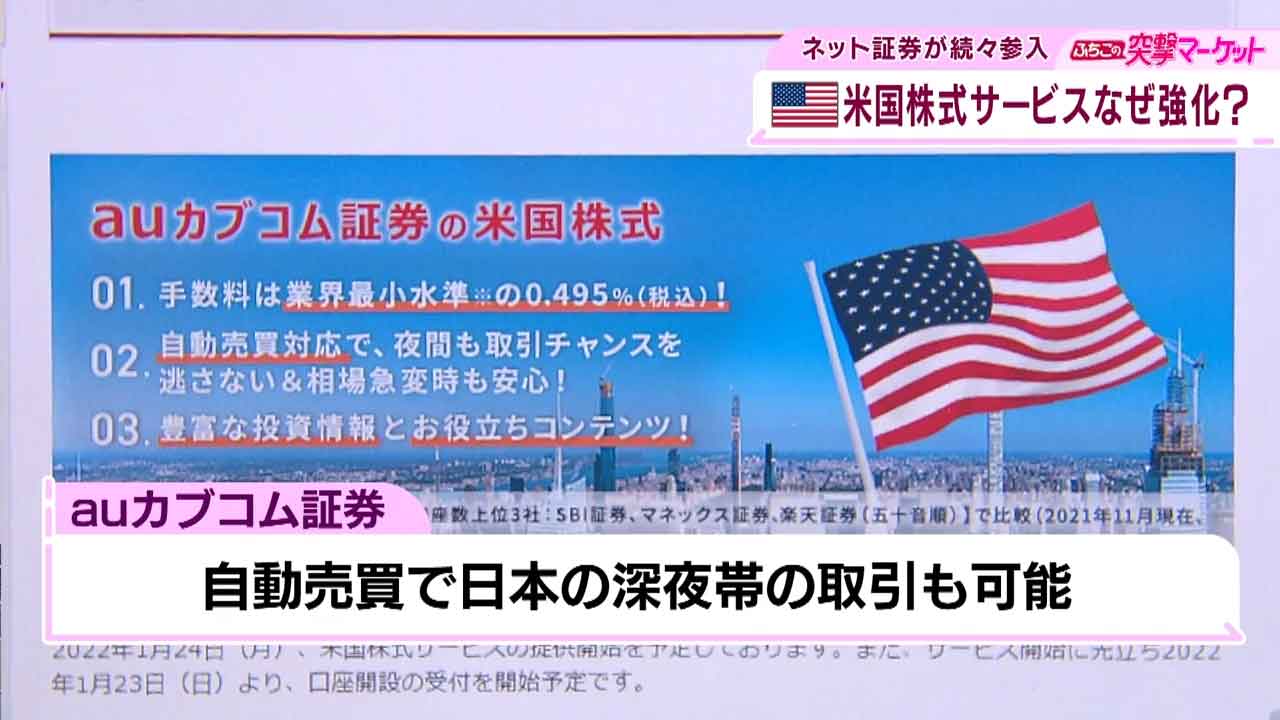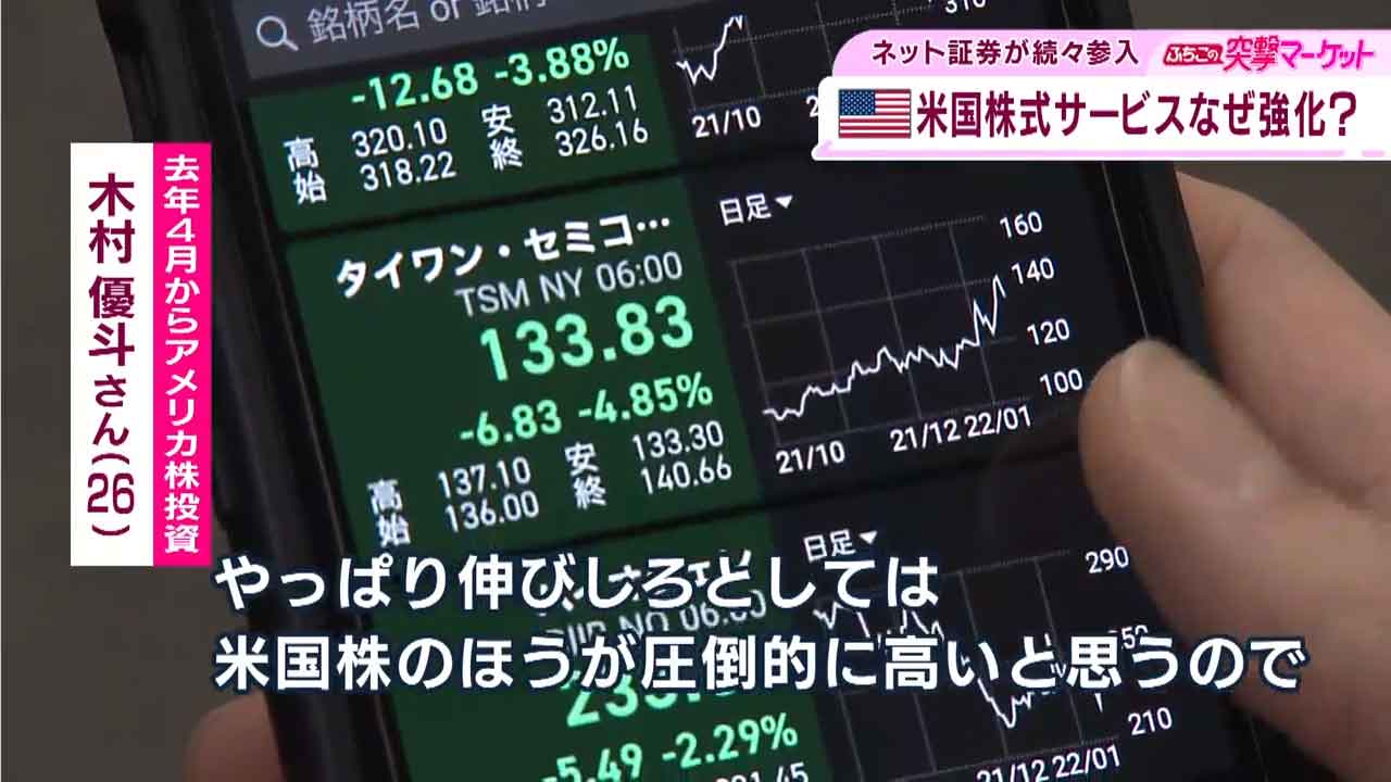 こちら、松井証券は来月下旬からアメリカ株の取引サービスを始める予定です。需要の拡大に試行錯誤をこらしていました。