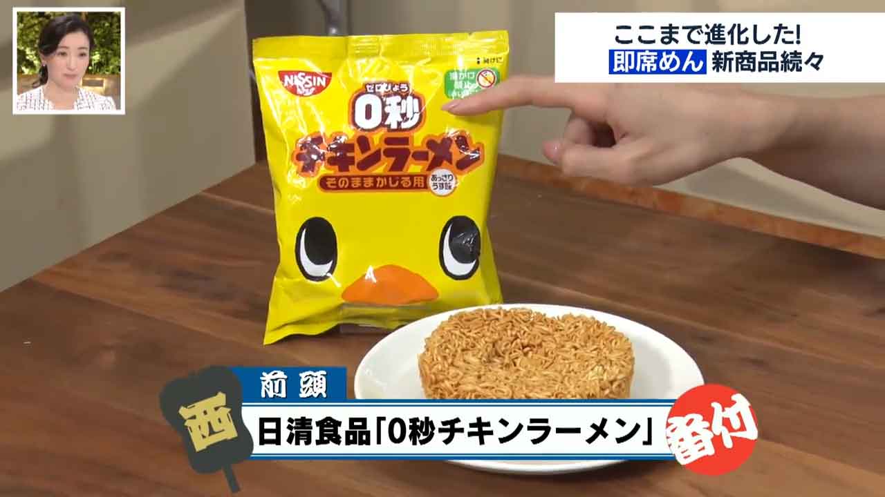 さらにこちらは日清のチキンラーメンですが、「0秒」と書いています。これはそのままかじって食べるタイプのラーメンということです。