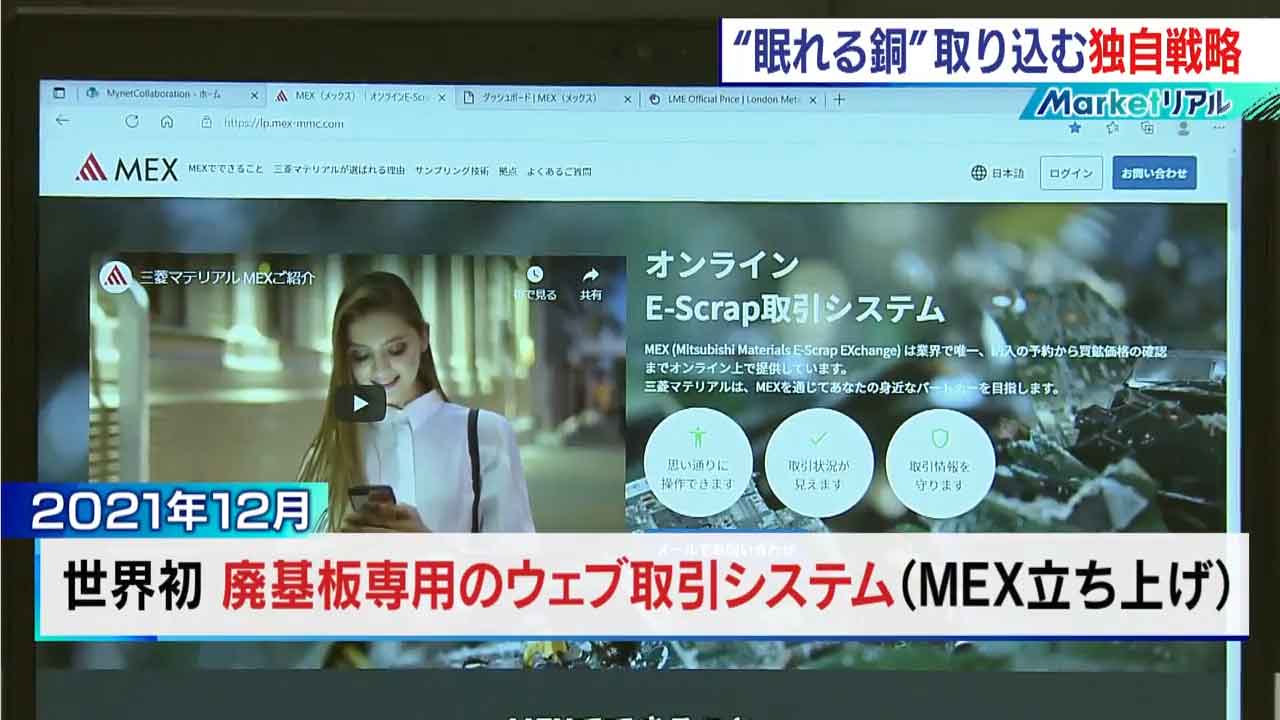 さらに去年12月には世界初となる廃基板専用のウェブ取引システム「MEX」を立ち上げました。