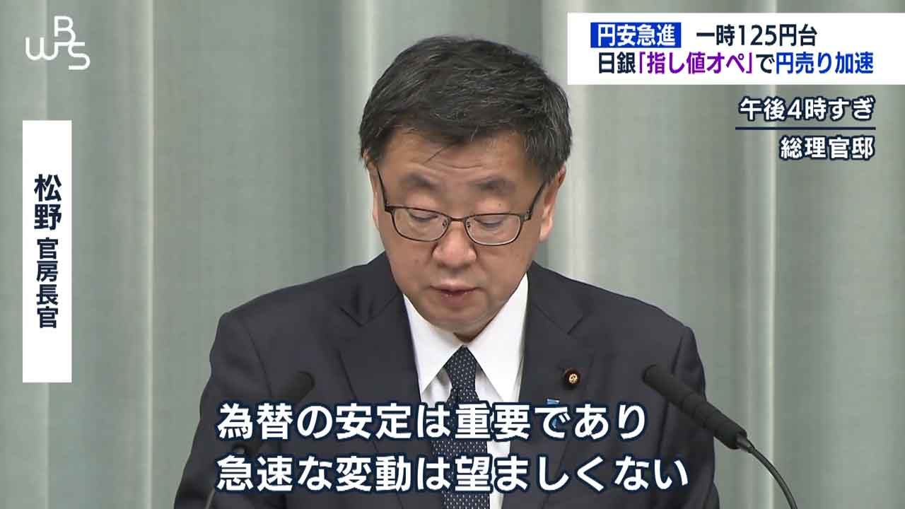 これを受けて市場では日米の金利差が拡大するとの思惑から円売り・ドル買いが一気に加速しました。急速に進む円安について政府は…