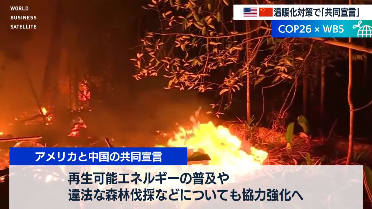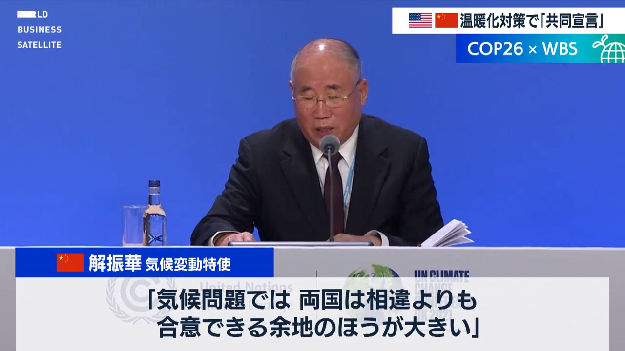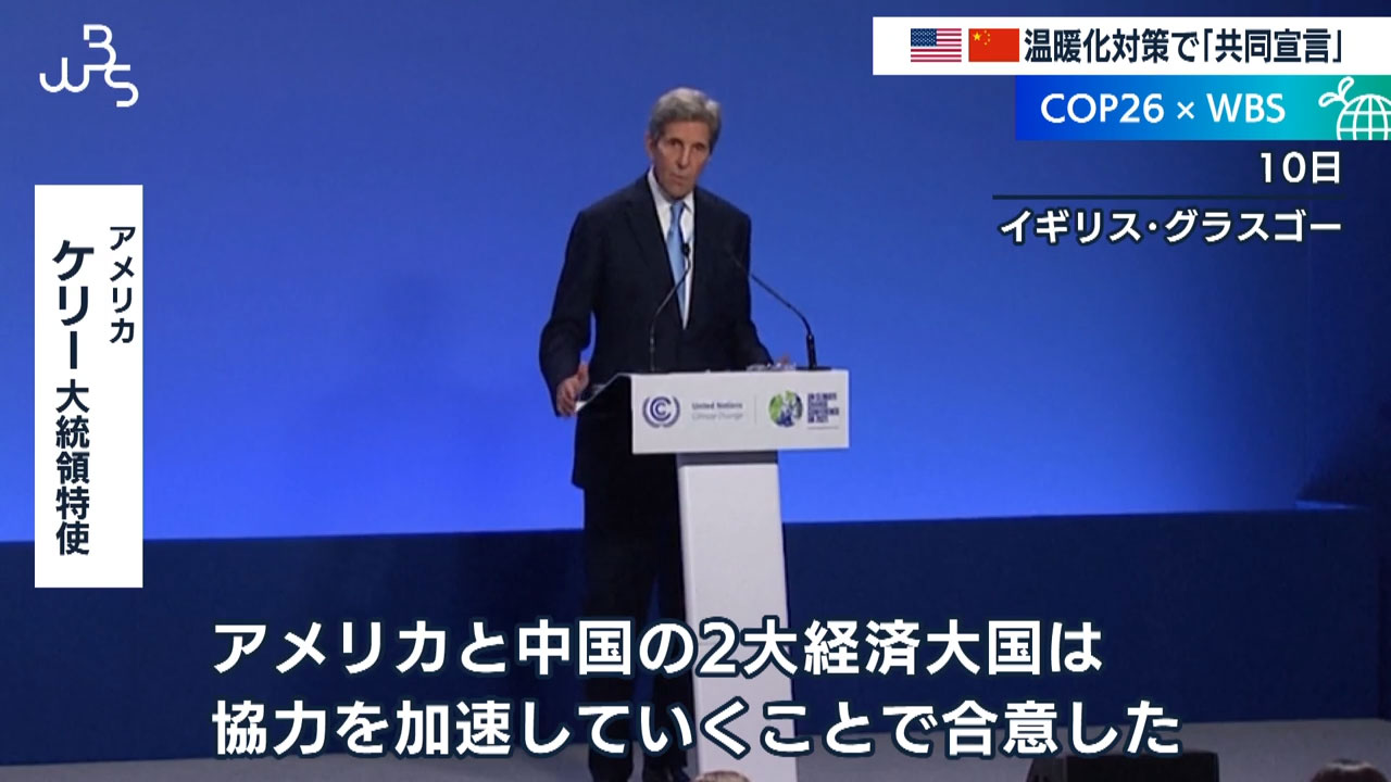 地球温暖化対策について話し合う国際会議「COP26」でアメリカと中国は今後、気候変動への対応で両国が強力関係を強化していくことを盛り込んだ共同宣言を発表しました。