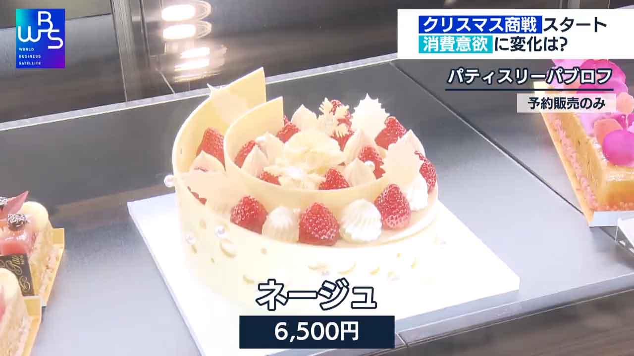 ケーキ店ではクリスマスケーキの予約をすでに開始。ホワイトチョコで細かい細工を施したケーキを売り出します。
