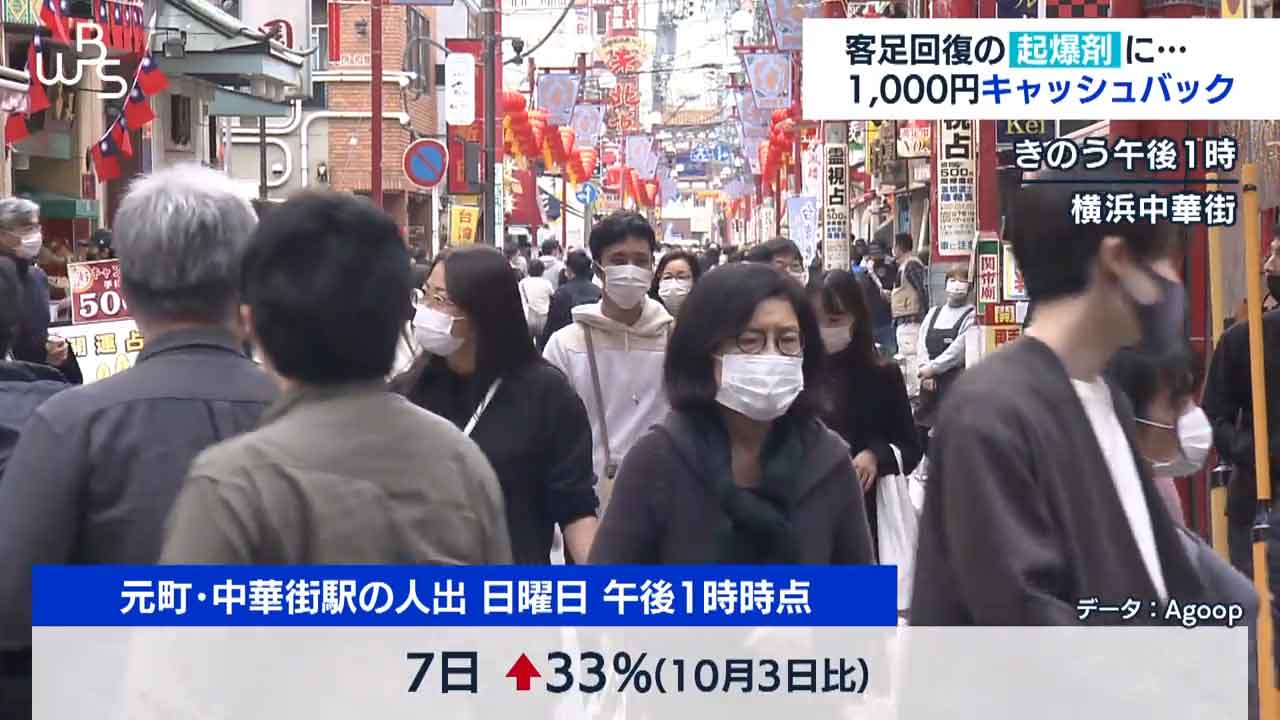 横浜にある中華街。日曜日の11月7日、人では先月に比べて3割以上増えています。