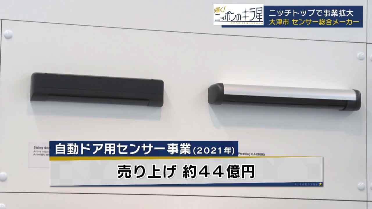 現在、グループの中核であるオプテックスの自動ドア用センサー事業の売り上げは44億円。