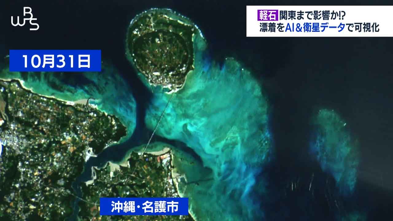 こちらは10月31日に撮影された沖縄県名護市の沖合の衛星画像。軽石はほとんど確認できません。