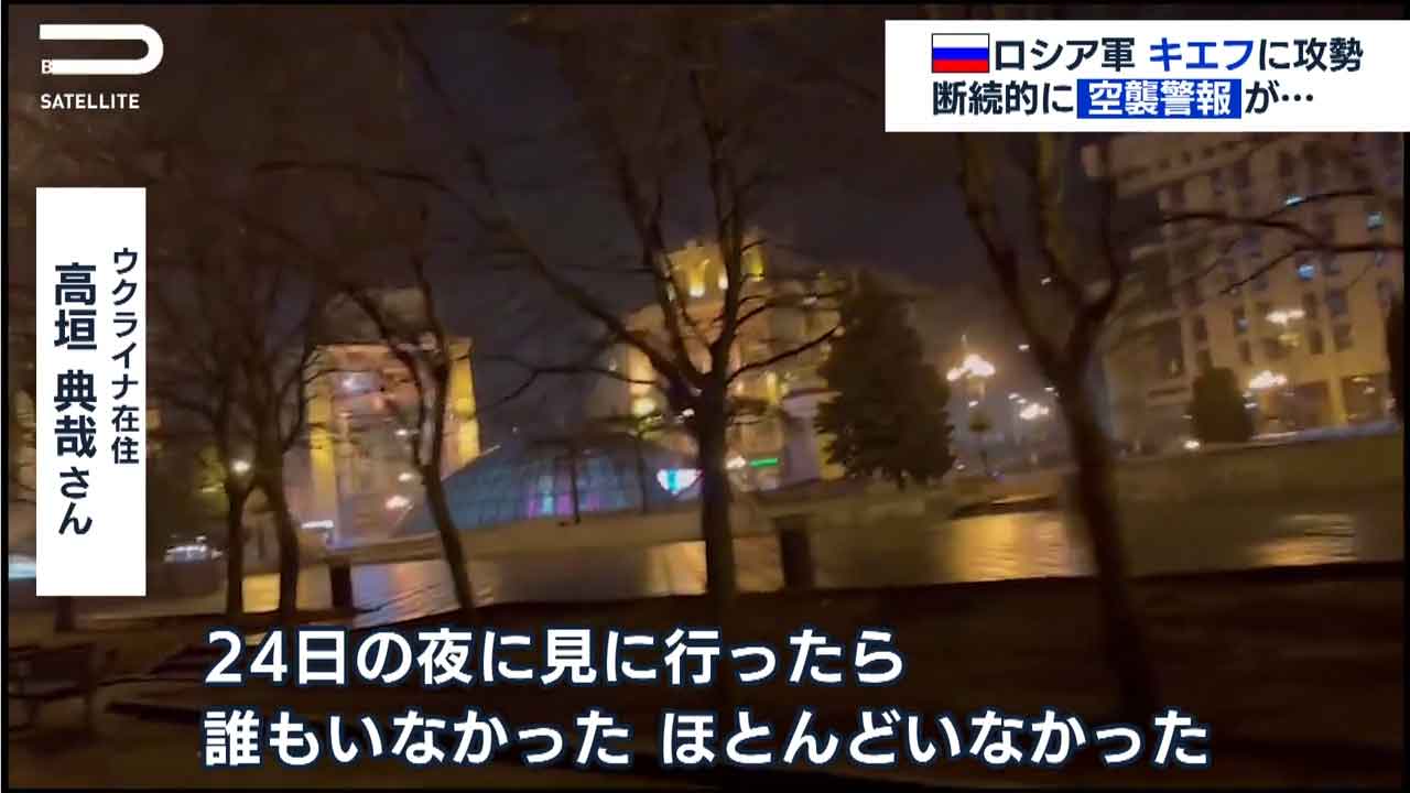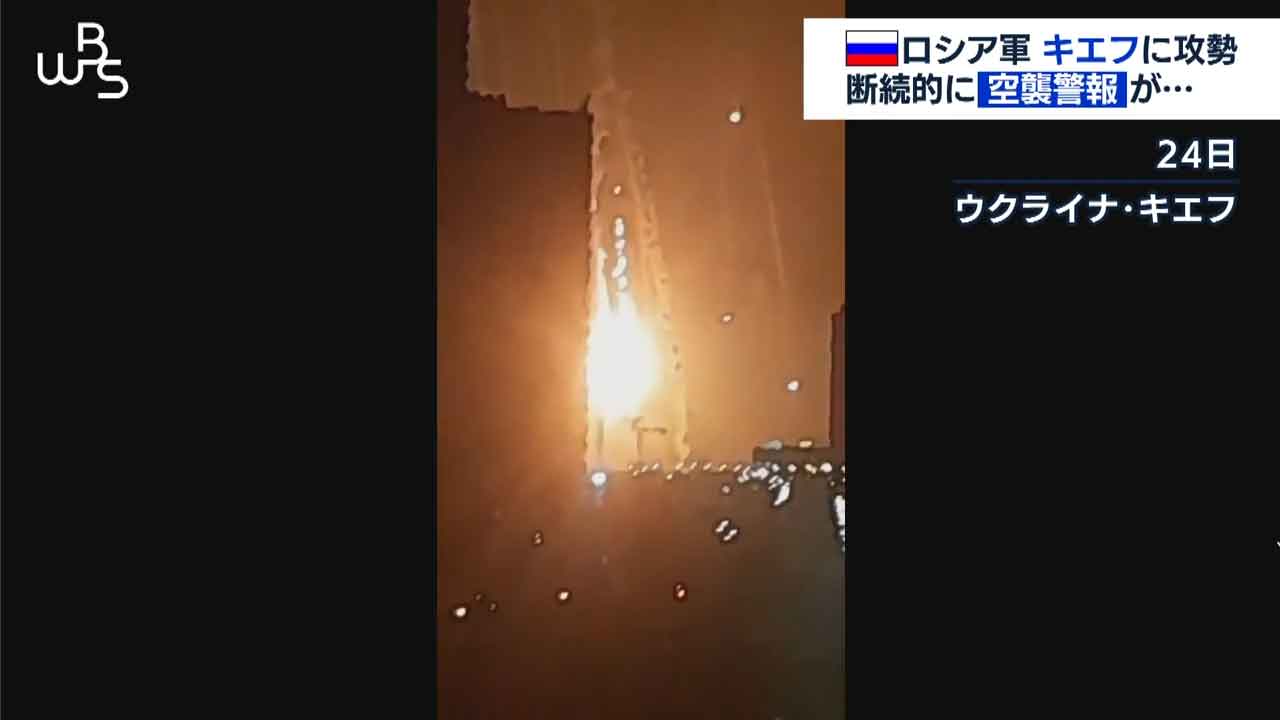 こちらは首都キエフ。物音を聞き、駆けつけた先には炎をあげる住宅。24日夜、空襲警報は断続的に発令されました。