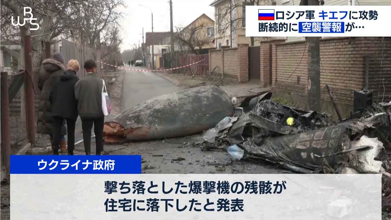 ウクライナ政府はロシアの爆撃機を撃ち落とし、残骸が住宅に落ちたと発表。