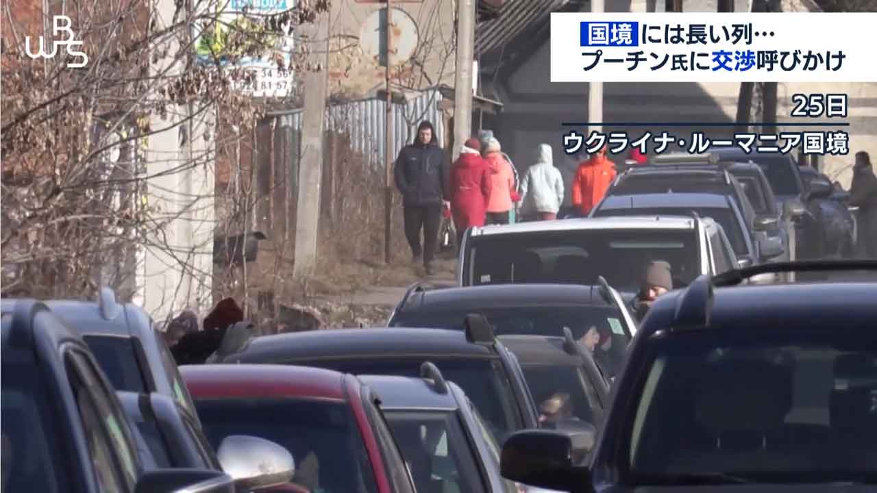 ルーマニアとの国境ではウクライナから周辺の国へ逃れる車や人々が長い列を作りました。