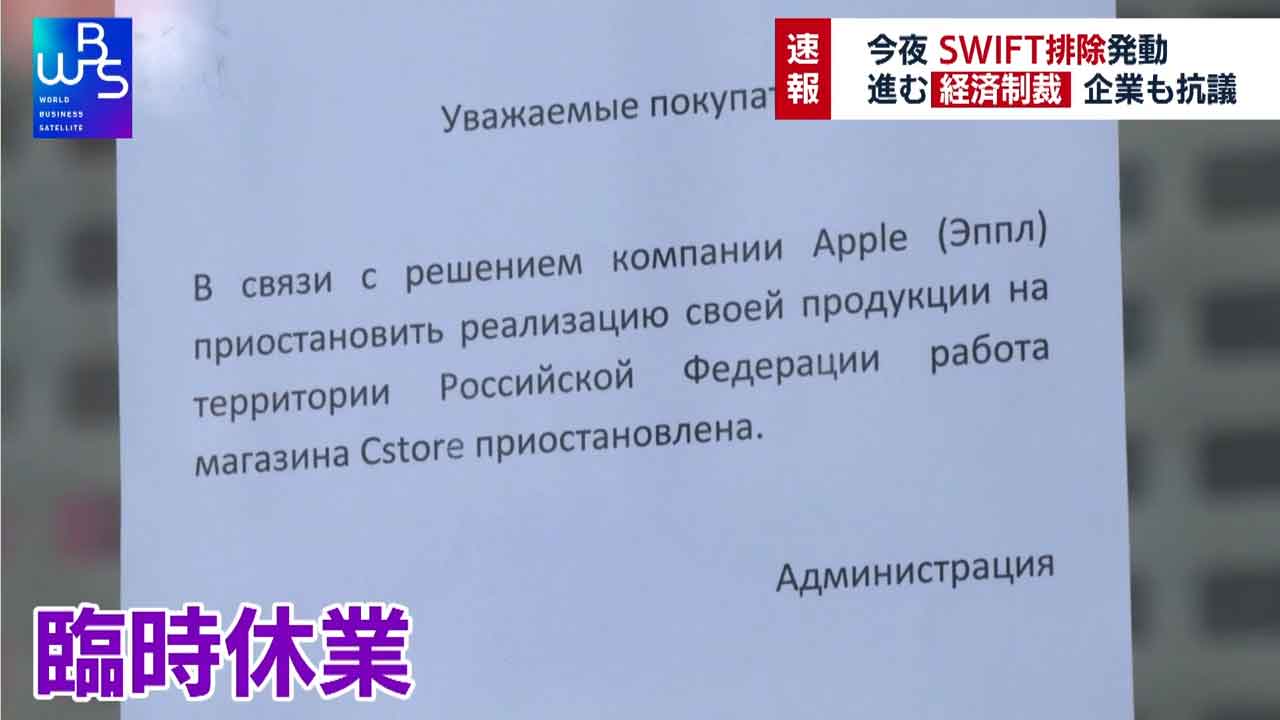 モスクワ市内にあるアップル製品の販売店には臨時休業の張り紙が。
