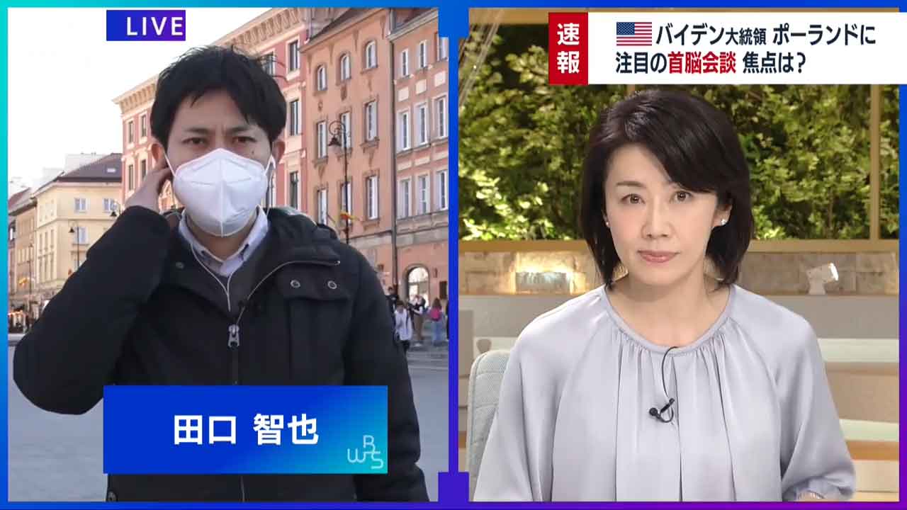 バイデン大統領、3月25日にポーランドに到着しました。首脳会談が行われる首都ワルシャワには田口智也記者がいます。