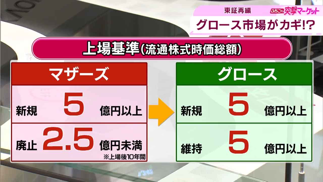 例えばマザーズの流通株式時価総額の新規上場基準は5億円以上ですが、廃止基準はそれを下回っていました。グロースではこの2つの基準を揃えたため必然的に成長を促す構造になっています。