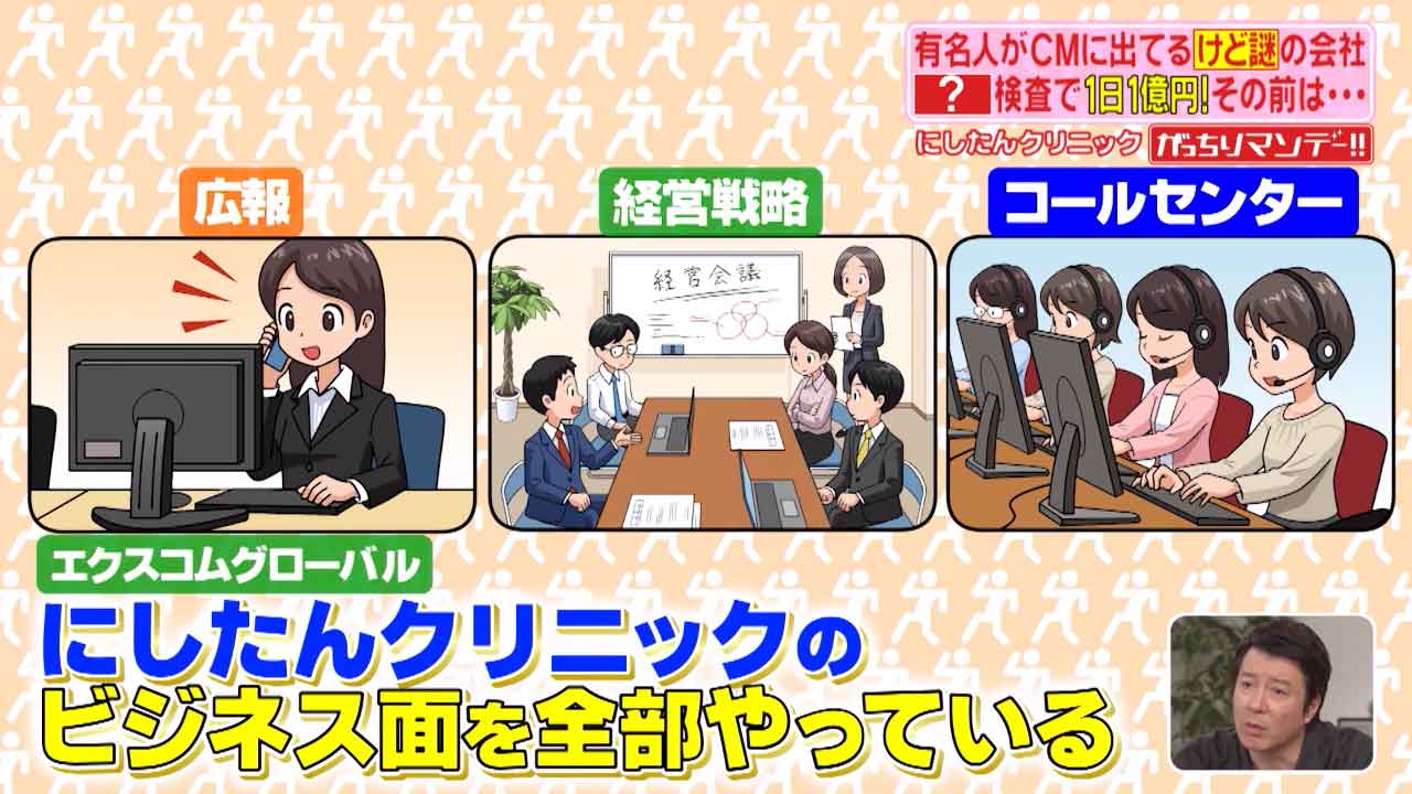 実はにしたんクリニックのビジネス面を全部まとめてやっているのがこのエクスコムグローバル。