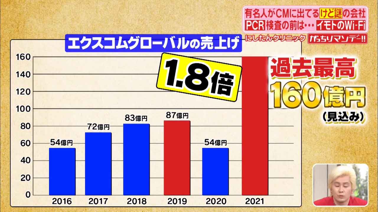 あわや倒産の大ピンチだったエクスコムグローバルですが、今期の売上げは過去最高の160億円を見込んでいる。これ、イモトのWi-Fiの時の1.8倍。