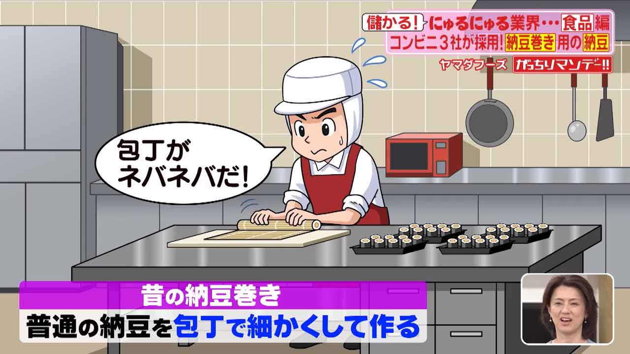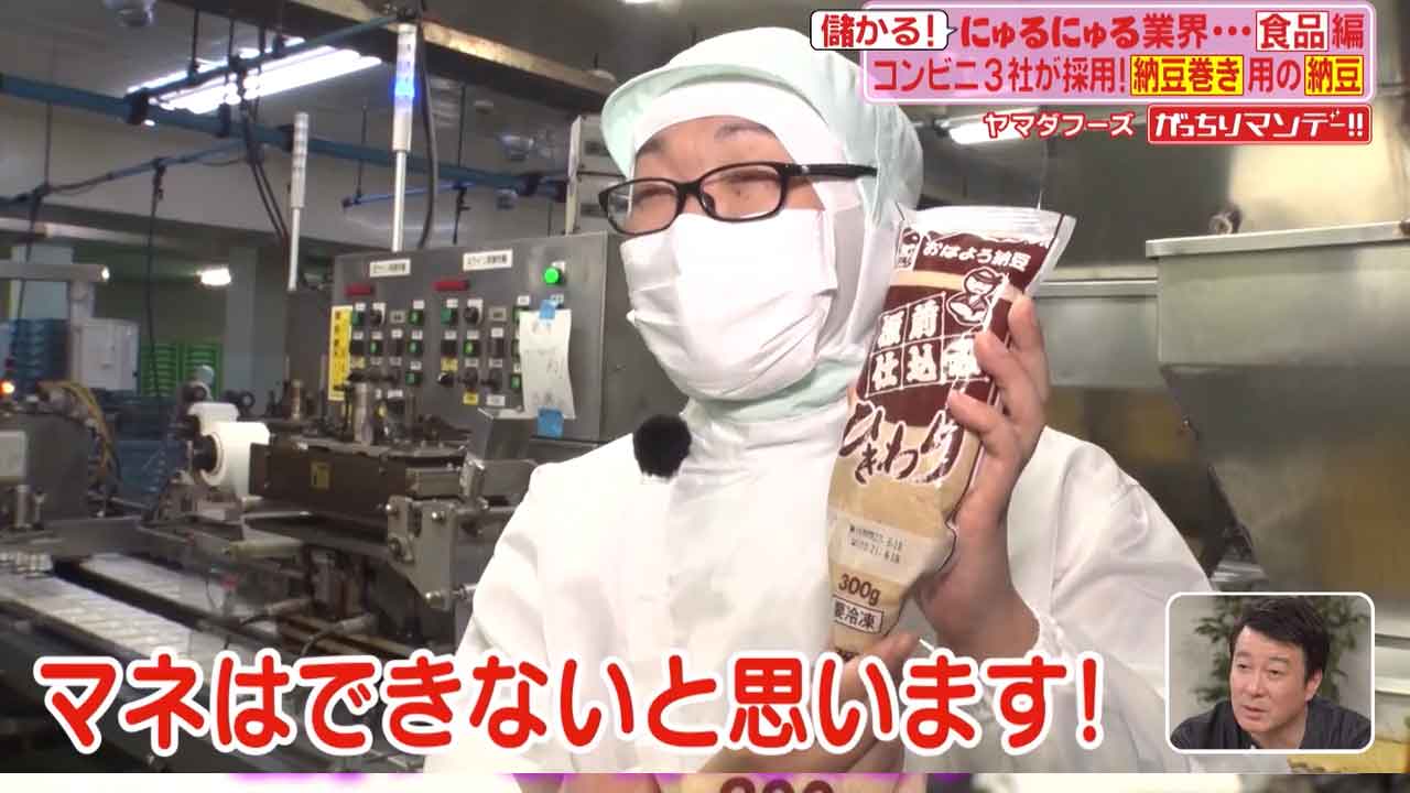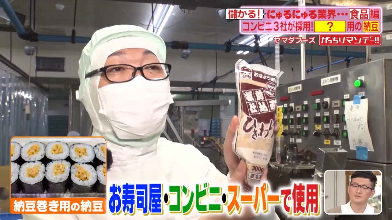 今では大手コンビニ3社の納豆巻きにもヤマダフーズの納豆が採用され大きく売り上げを伸ばしているんだとか。